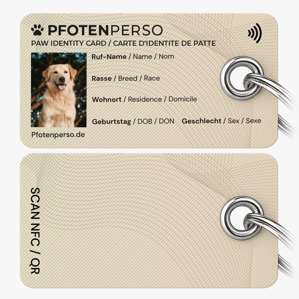 Der Pfotenperso ist die personalisierte Haustiermarke, die alle relevanten Informationen zu deinem Tier enthält und eine einfache Kontaktaufnahme mit dem Besitzer ermöglicht. Wird der Pfotenperso mit dem Smartphone gescannt, kann ein Finder dich ohne Umwege kontaktieren.
